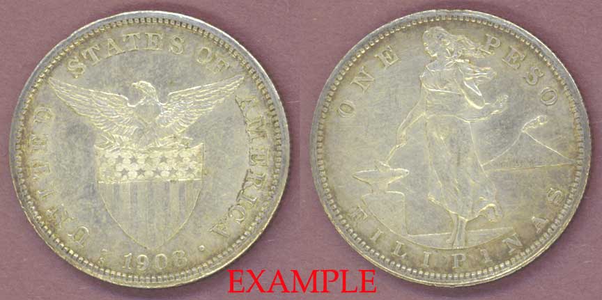 Item Number: PHIL-35E Extremely Fine or Better - 1 Peso #172 - .800 Fine Silver - You will receive a extremely fine or better example of this date and mint. This type was made for only 6 years 1907-12. Made at the San Francisco Mint$85.00