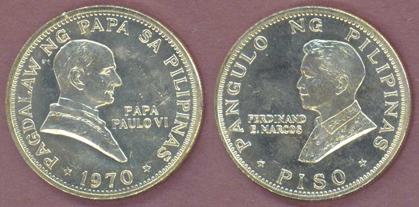 Uncirculated - Piso #202 Nickel - Pope Paul VI and Ferdinand Marcos. Made for only one year. Mintage of only 70,000