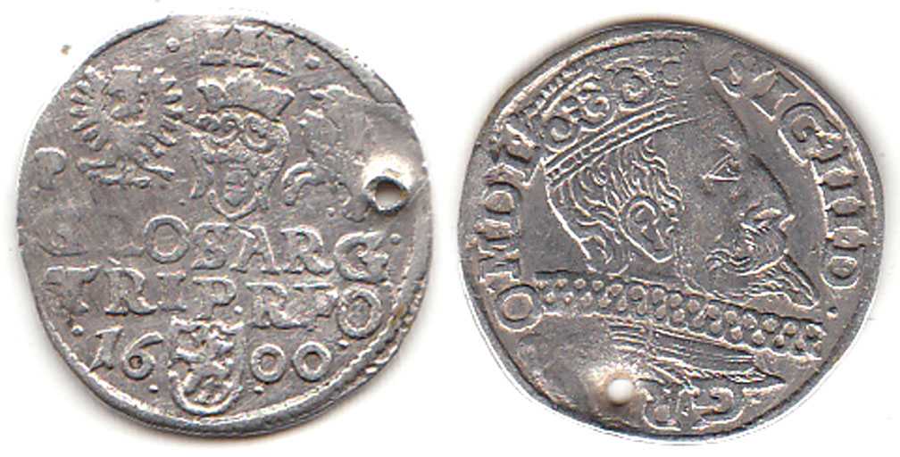 Item Number: POL-35 Very Fine Details Holed - 3 Groschen Silver. Sigismund III Ruler. Sharp details on this 400+ year old coin. Approximately 19 MM.$50.00