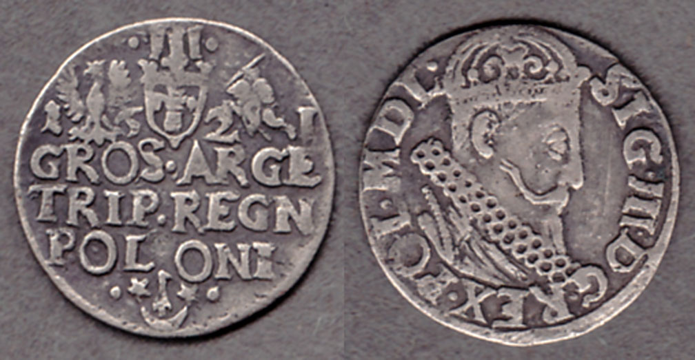 Item Number: POL-37 Fine+ Good - #31 - 3 Groschen Silver - Ruler = Sigismund III. Pretty nice condition for being almost 400 years old. Silver coin about the size of a nickel. $75.00