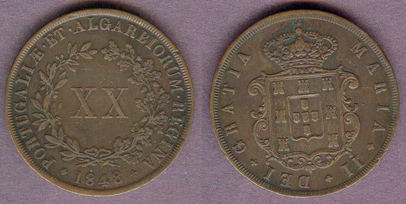 Item Number: Port-25 Extremely Fine - 20 Reis KM#482 Copper Approximately 37.5 MM . Large copper in excellent original condition. Mintage of 801,000$60.00