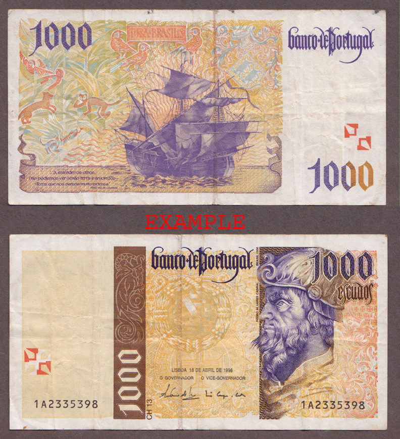 Very Good or Better - #188 Front is Purple and Brown on multicolored underprint with Pedro Alvares Cabral at right. Back - Old sailing ship at center . Watermark: Pedro Alvares Cabral