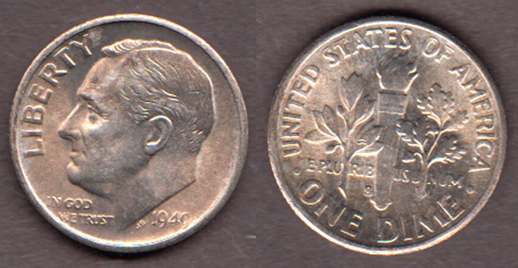 Item Number: RD-102 Mint State 60 or Better - Key date to the Roosevelt set. Original toning with a light scratch on the obverse. $40.00