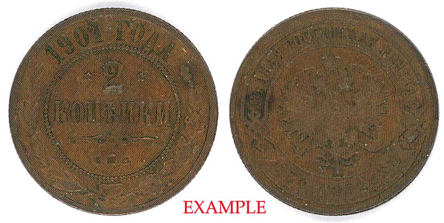 Fine or Better - 2 Kopek KM #10.2 Copper. Made at the St. Petersburg Mint.