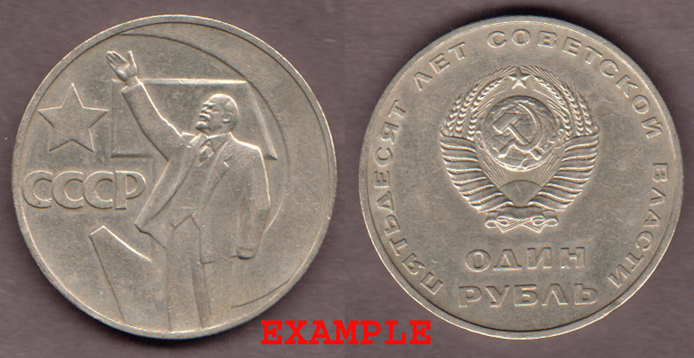 Very Fine or Better - 1 Rouble KM-140.1 Copper-Nickel-Zinc. Approximately 31 MM. 50th Anniversary of Revolution. Lenin with right arm raised.