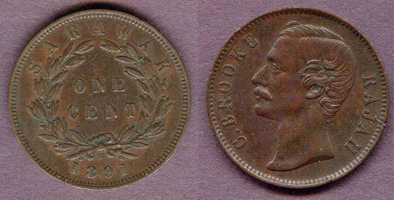 Item Number: Sarawak-26 Extremely Fine+ One Cents KM#6 Copper Ruler Charles V. Brooke Rajah 0n reverse. Original uncleaned large copper with luster in protected areas.$40.00