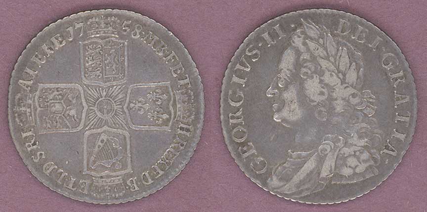 Very Fine+ Shilling #583.3 Made of Sterling Silver. Attractive with nice details on this 250+ year old coin. Head of King George II. This type made for only 4 years.
