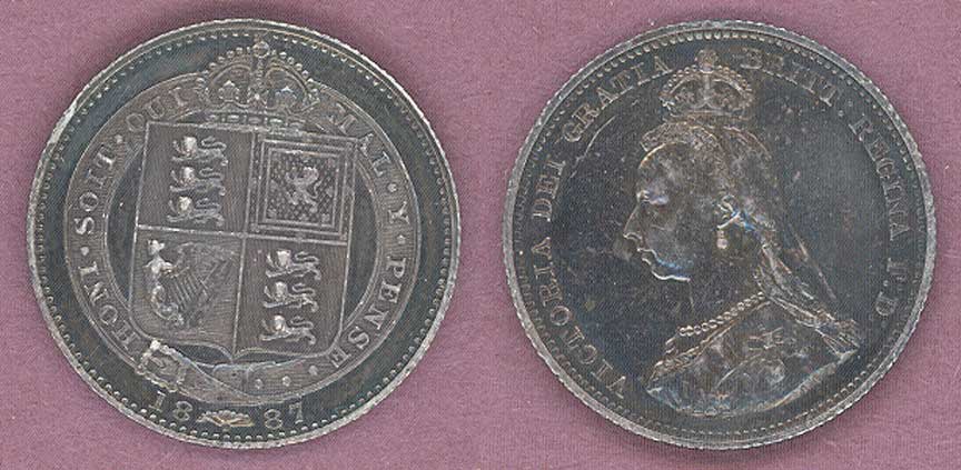 Item Number: GB-66 Extremely Fine+ Shilling #761 Sterling Silver. Head of Queen Victoria. This type with small bust was made only 3 years 1887-89. XF+ details toned a little dark.$50.00