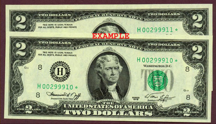 Item Number: FRN-24E 2-Crisp Uncirculated - FR-1935-H* Neff/Simon - Consecutive Numbered Bicentennial Star notes from the St. Louis Federal Reserve District "H" $32.00
