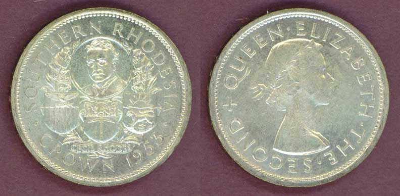Item Number: SRhod-24 Uncirculated - Crown KM#27 .500 Fine Silver. One Year Type Coin! Birth of Cecil Rhodes Centennial. Large silver dollar size.$90.00