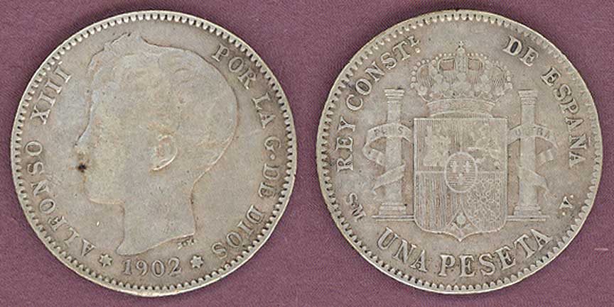 Item Number: SPA-33 Very Fine - Peseta KM#706 .8350 Silver - Original uncleaned surfaces with dates visible in both stars. This Type made for only 2 Years. Ruler Alfonso XIII$95.00