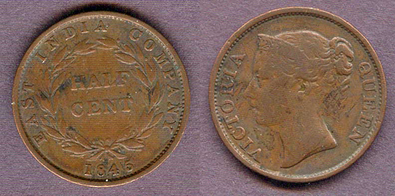 Item Number: Straset-23 Fine+ Half Cent KM#2 Copper East India Company Original uncleaned copper.$25.00