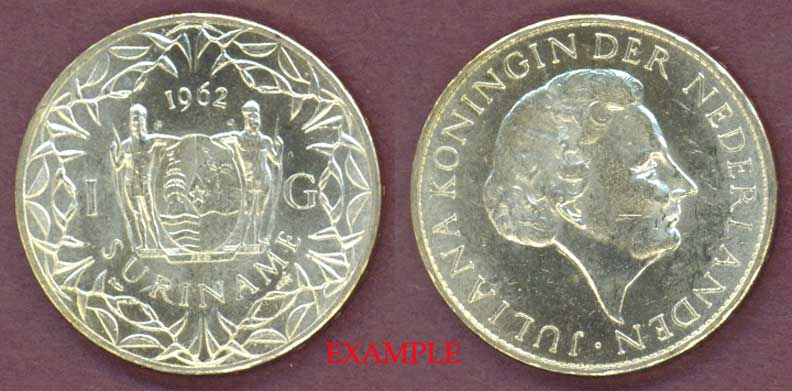 Item Number: SURI-23E Uncirculated - 1 Gulden KM#15 .720 Fine Silver. Made only 2 years for general circulation. Mintage 150,000$80.00