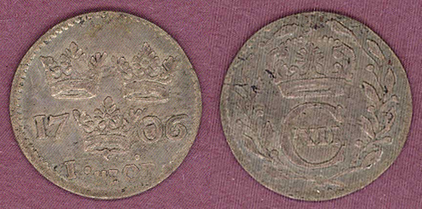 Very Fine+ #250A .250 Silver - Very high grade for a 300+ year old coin. About the size of a dime. Ruler Carl XII 1697-1718.