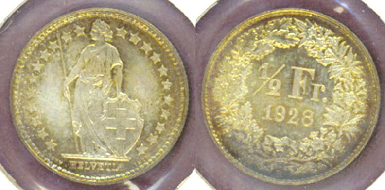 Gem Uncirculated - 1/2 Francs #23 .835 Silver Bern Mint. A beautiful little gem with original uncleaned surfaces with light golden toning and great luster. Low mintage of only 1,000,000