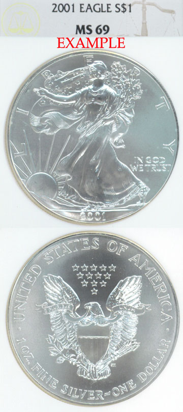 NGC MS-69 - 1 ounce .999% PURE SILVER 40.6 mm Mintage of 9,001,711