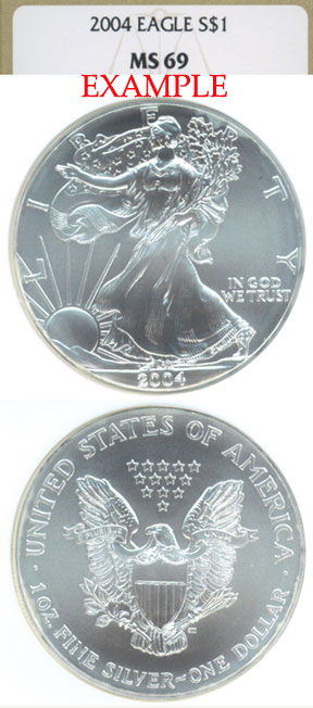 Item Number: SE-75E NGC - MS69 - Bright White and very clean for such a large coin. 1oz .999% PURE SILVER 40.6 mm. Mintage of 8,882,754$70.00