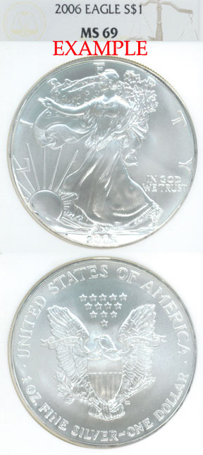 Item Number: SE-77E NGC - MS69 - Bright, white and very clean for such a large coin. 1oz .999% PURE SILVER 40.6 mm. Mintage of 10,676,522$70.00