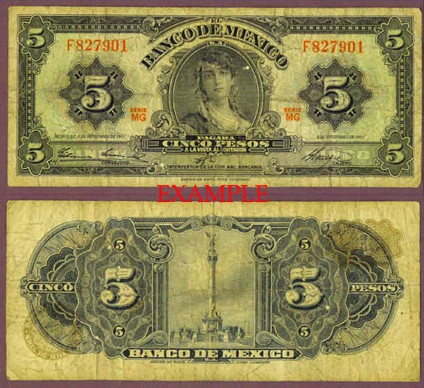 Item Number: MXP-23E Very Good or Better - #60 Front is black on multi-colored underprint with muted shadings of rose and mint flanking a portrait of a gypsy girl at center. Back is in gray with a picture of the Independence Monument at center.$3.00