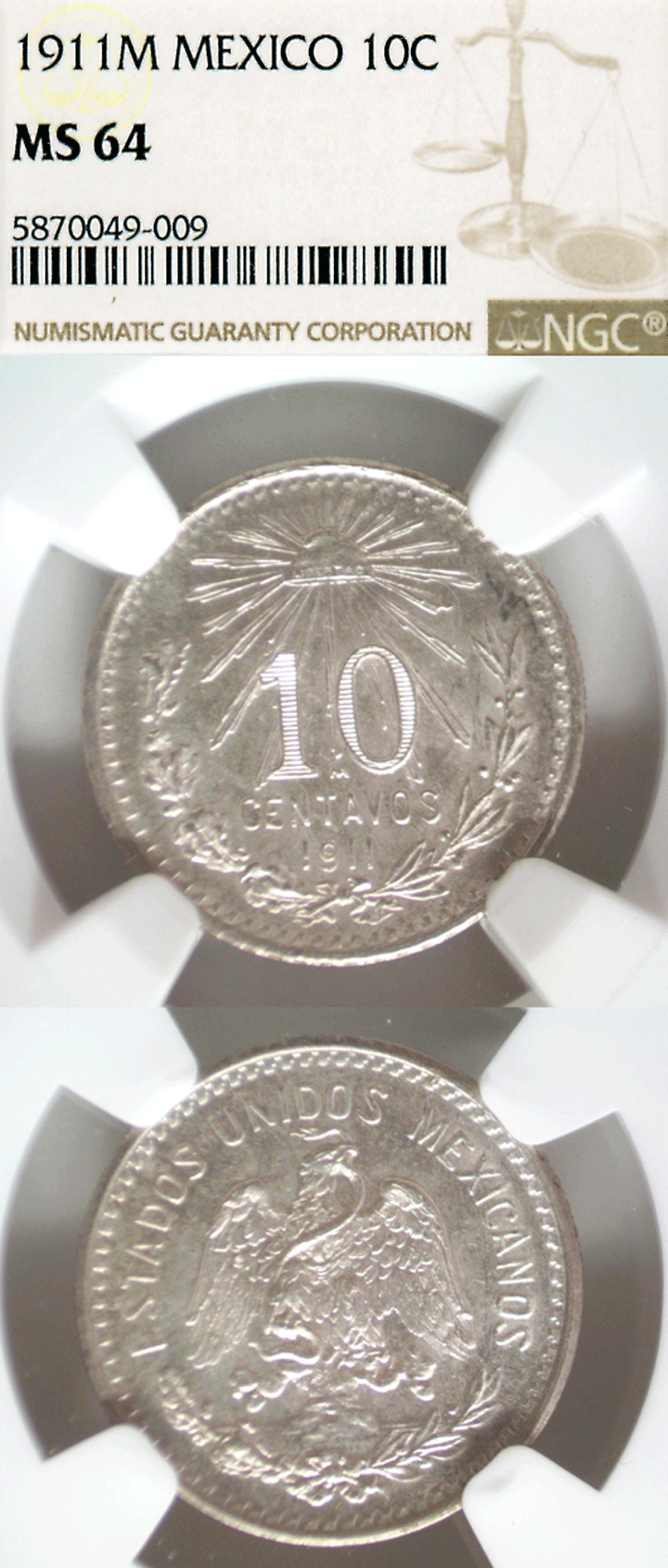 Item Number: MX-441CC NGC Mint State 64 - KM#428 .800 Silver Approximately 18 MM - Radiant mint luster on sharply struck near white surfaces.$150.00