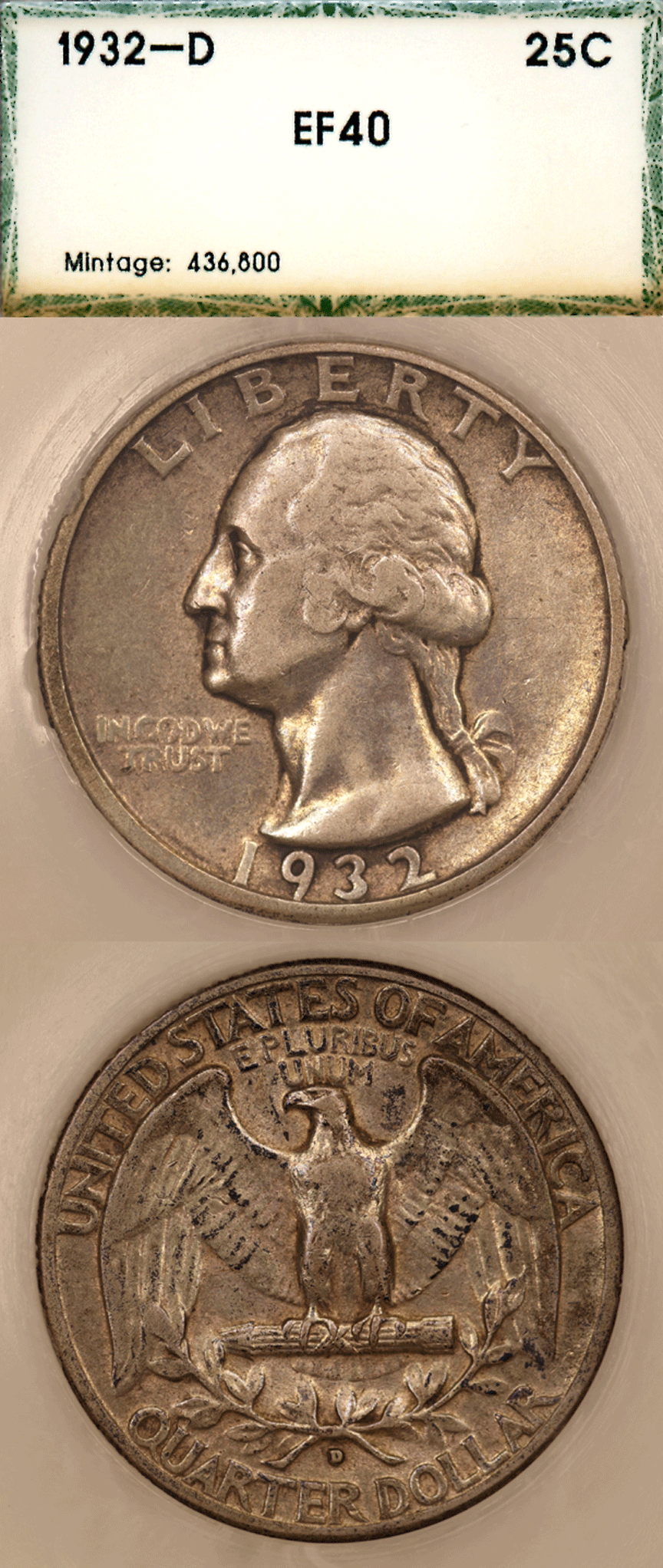 PCI Extremely Fine-40 - The KEY DATE to the Washington Quarter series. Nice original coin with no problems. Tougher coin to find!. Low mintage of only 436,800