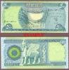 2004 500 Dinars Crisp Uncirculated - #92 Smaller than the US dollar. White horse head watermark. Front is a green and blue on multicolored underprint Ducan Dam at center. Back has winged bull statue. |