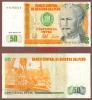 1987 50 Intis Choice Uncirculated - 50 Intis #131 Front is Black, orange and green on multi-colored underprint with portrait of Nicolas de Pierola at right. Drilling rig on back. |